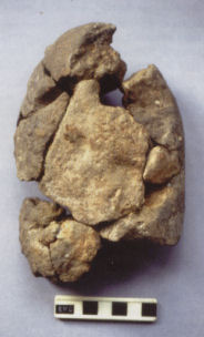 The presence of a separate, earlier Neolithic occupation, sealed beneath the mound had been recognized in the 1960s. In the recent excavations, several hearths, pits and post-holes belonging to this phase were identified around the apex of the natural rise, together with a dense scatter of pottery (over 650 shards) and worked flint (over 750 items). Other post-holes, probably part of a long rectangular building were found just beyond the barrow on the south-east side. All of the pottery was heavily weathered due to long exposure on the surface prior to being covered by the mound. A large number of different vessels were represented, some plain, some decorated with grooves, stamps, cord or finger-nail impressions, and mostly of mid-Neolithic tradition. Much of the flint was waste material from tool-making. Narrow blades dominated the assemblage, but there were also scrapers, knives, part of a large polished adze and a tranché-type arrowhead (triangular with a single barb). One unusual scraper and one knife had been ground to a perfect edge. The occupants had mainly exploited the best quality black flint from the local boulder clay, which could have been collected from stream beds or the Humber shore. Fragments of several saddle querns and rubbing stones were recovered from one pit, and a fired clay loom weight had been used as packing in one of the post-holes. This may be the earliest loom weight found in Britain to date.