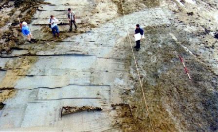 A series of charcoal samples from a hearth and various postholes provided new AMS radiocarbon dates. Neolithic people had occupied the site for over a thousand years, from the early 4th millennium BC to the mid or late 3rd millennium BC. At that time, five thousand years ago, the sea may have been at least ten kilometres away to the east, but the Humber shore would have been almost as close as it is today. The settlement stood at the side of the Kilnsea Fleet, a broad valley running in a north-easterly direction from the estuary. A henge monument (see below) and several other round barrows occupied the same valley, which later became a tidal creek when sea levels rose. The continued importance of this inlet into the early Bronze Age was confirmed in 1996 when Society members found a fragment of a sewn-plank boat on Kilnsea beach. This was dated by radiocarbon to 1870-1670 cal BC, the earliest example in Britain. Sewn-plank boats are thought to have been sea-going vessels.
